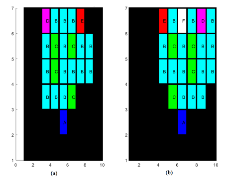 Figure 3:Highly Enriched Uranium (HEU) core: 1 be source, 4 Control rod (C), 14 Fuel elements (F) and 1 half fuel element.