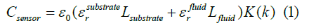 The Substrate Contribution εr substrate Lsubstrate part of the electric field fringes downwards into the solid chip material (substrate) and its contribution is fixed once the chip is made. The Fluid Contribution εr fluid Lfluid This is the sensing part. The electric field also fringes upwards into the channel containing the fluid. A change in the fluid’s dielectric property εr fluid directly changes this term. The constants K(k) is a complete elliptic integral of the first kind, which is a complex function that depends entirely on the physical geometry of the electrodes (their width, spacing and thickness). Finally, everything is scaled by the vacuum permittivity ε0 .
