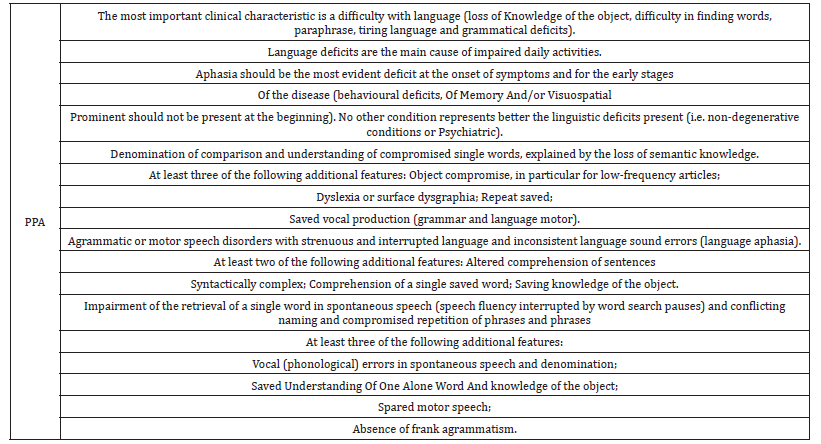 Table 1:Summary of international consensus criteria for clinical diagnosis and classification of progressive primary aphasia.
