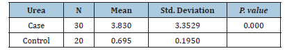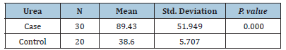 Table 2: Comparison between Case and Control based on Creatinine levels