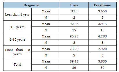 Table 5: The effect of Diagnosis on the Urea and creatinine