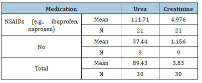 NSAID group in lowering urea and creatinine levels (P values=0.000 and 0.003, respectively).
