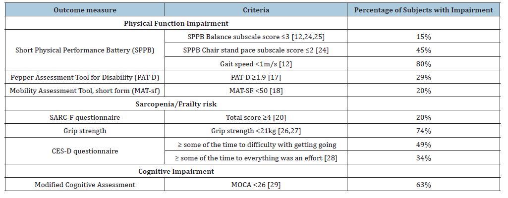 Table 1: Geriatric impairments targeted to characterize the geriatric incontinence syndrome phenotype.