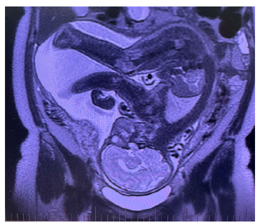 Figure 1:A coronal T2-weighted Foetal MRI sequence of the pelvis showing an arcuate uterus.