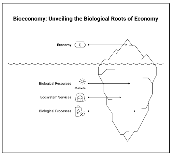 Figure 2:Bioeconomy as an iceberg revealing the hidden biological foundations of economic systems.