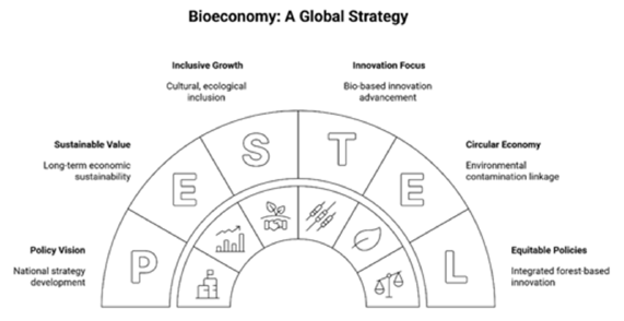 Figure 7:PESTEL framework illustrating the multidimensional global strategy for advancing the bioeconomy.