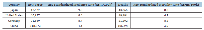 Table 1:Incidence and mortality rate as a result of pancreatic cancer in some nations across the globe (country-specific data).