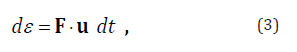 where u is the velocity vector of the body relative to the motion of the force’s source, and the product of force and relative velocity (F⋅u) expresses the power supplied to the system from the source of the force.