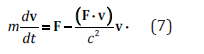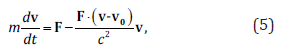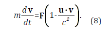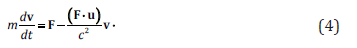 Combining the above three equations (1)-(3) we obtain a relativistic equation of motion: