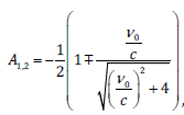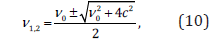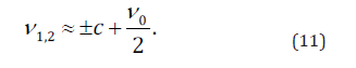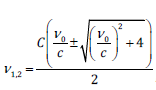 which is also depicted in Figure 1. It should be noted that only for v0 =0 we have a symmetrical solution,v1 =-v2 =C . This is also the case described by special relativity. For non-zero values of v0 , the symmetry is broken. For small values of the ratio v0/c formula(10) can be replaced by: