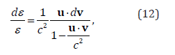 where both mass and force were expressed by energy, m=e/c2 and F⋅u dt=dε. Finally, by integrating equation (12) we get: