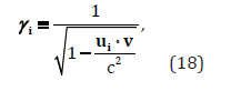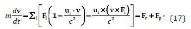 For stationary sources of force fields, the parameters gi become equal to g , and all relative velocities ui become equal to the particle velocity v . Thus, for a static source of force, equation (17) reduces to the commonly known relativistic equation of motion (7).