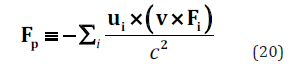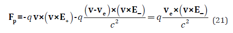 So, we have a sum of two interactions, one with a field due to positive charges and the other with a field due to negative charges (electrons). In the model case under consideration, we have for cations u1 =v, and for electrons u2 = v− ve. The component Fp of the total force, given by (17), is thus expressed by the formula: