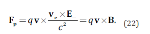 The force Fp expressed by the formula (22) is called the Lorentz force for a point charge moving in a magnetic field with induction B. In turn, the intensity of the current for free electrons moving in a conductive rectilinear wire with speed v0− = ve is: I = λ− ve. Thus,the value of the magnetic field induction vector can be written as: