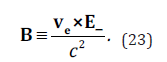 The result is fully compatible with the prediction of relativitybased formulation of electromagnetism (via electromagnetic field tensor). The value of the length of the field induction vector B depends only on the electric field component perpendicular to the electron velocity, ve , and is expressed by the formula: