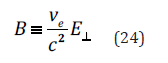 For the considered case ve⋅E/+− =0 and v⋅E/+− =0, so we can convert the velocity vectors into a vector triple product, which gives:
