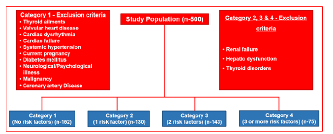 500 Indian adults (aged 18-60 years; both sexes) were enrolled. Participants were categorized into four