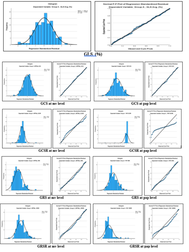 Previous studies have documented the impact of Cardiovascular Risk Factors (CVRFs) on GLS [9,10], though primarily using 2D STE. A thorough literature search revealed no prior studies that comprehensively evaluated the influence of CVRFs on Multiple LV Strain Parameters (MLVSP) through rigorous statistical techniquesnamely, trend analysis, Pearson’s correlation, and multivariate regression for linearity assessment. This investigation was therefore designed to address this important methodological gap.