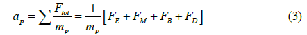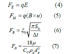 The total force that pushes the particles is defined as follows as the electrical force (FE), a magnetic force (FM) known as Lorenz force, Brownian force (FB) and drag force(FD) respectively;