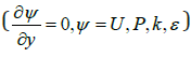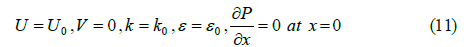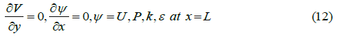 At the inlet (x = 0) , uniform velocity, kinetic and dissipation rate distribution, have been concerned. In addition, a constant pressure gradient along the x-axis has been taken into use.