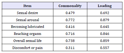 Table 1:Commonality and loading for each fsfi-6.