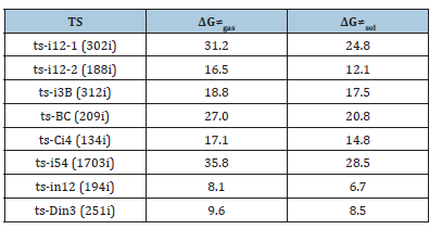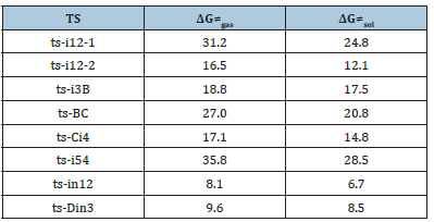 Table 1:The activation energy (in kcal mol−1) of all reactions in gas and solvent.