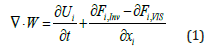 Where Fi,Inv and Fi,VIS are Fourier transform of the induced pressure gradients and U is velocity vector field in cartesian coordinate i=(u,v,w). The flux vector (W) will be made up of continuum and non-continuum functions. It is important to point out, a randomized solution will only need to consider the part where continuum assumption cannot be made, considering a microscopic flow quantity Φ. The non-continuum Knudsen number is approximated as: