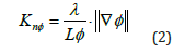 where λ is the local mean free path of flow, L is the characteristic length of the sample molecules and ∇ϕ can be assumed to be the gradient of the non-continuum part of the velocity vector. For the simulation, velocity will be assumed to be in only one direction and therefore the local non-continuum Knudsen number will be given by: