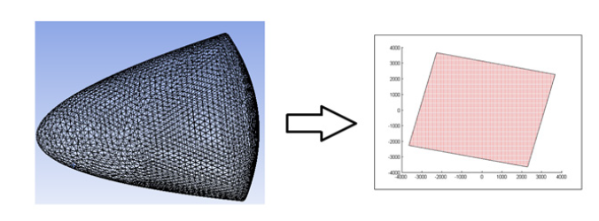 From Figure 3, it could be noted that the maximum temperature of 5262 K was observed near the flow stagnation point and there was a uniformly crescent profile around the leading edges. Another crucial point that needs to be noticed from Thermo-Fluid analysis is that the change of pressure occurs only in areas where there is a highly randomise change in temperature, making low pressure points directly proportional to high temperature points. Experimental data from hypersonic wind tunnel availability is scarce, and in most cases has very limited applicability as it looks only at small samples with diameters of 10-20 mm and with an exposure that does not exceed 1-2 seconds A similar hafnium based CMC was tested in a plasma wind tunnel by Savino et al. [22] using several different geometries including one very similar to the shape considered in this paper. The results of the CFD analysis shows a temperature distribution similar to the ones observed using Ansys Fluent MC with a maximum temperature of 3890 K at the stagnation point [23]. White et al. [23] developed a bespoke solver using Direct Monte Carlo Simulations within the Open Foam framework, such solver was based upon similar parameters used in these simulations but was applied against a cylinder. Published results of this analysis only consider the rotational temperature distribution with a peak temperature of 4800 K at the stagnation point, there was no data on translational temperatures or pressure distribution. Casseau et al. applied the exact framework using a Pyfoam based solver across the cylinder, temperature and pressure distributions were very similar to the ones found by Fluent solver [24]. Traditional FEM based model would use an average value of temperature and pressure to calculate the heat-flux and such value will then be used as an input value for the stress analysis, such methodology tends to have a negative effect on the overall results of the simulation. Hence it is often necessary to perform multiple simulations with multiple paraments to increase accuracy. Hence, purpose of this paper is to use big data driven experiment to derive the data set and then to export the data set as a csv file in the machine learning model.