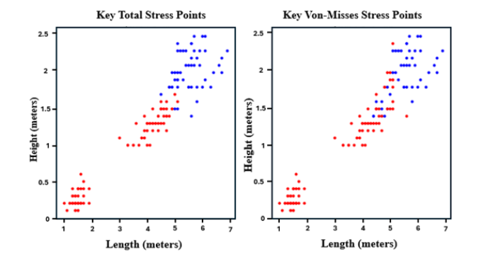 Figure 8:Stress distribution based on the ZrB2 - SiC dataset red points represents highest point of stress and blue points represents the lowest point of stress.