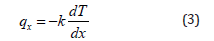 Equation (3) is Fourier’s law in one dimension. The general form of equation (3) in three dimensions is: