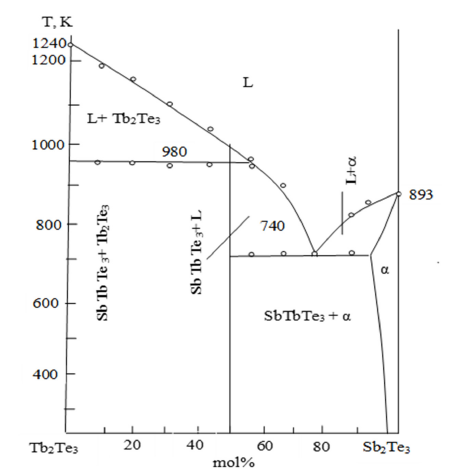 Figure 1:State diagram of the Sb2Te3- Tb2Te3 system.
