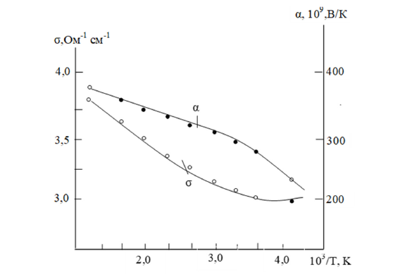Since Sb2Te3 is a semiconductor material with a defect structure, it is necessary to study the temperature dependence of the electrical conductivity and thermoelectric coefficient of terbium and its ternary telluride alloys in the solid solution region based on it.