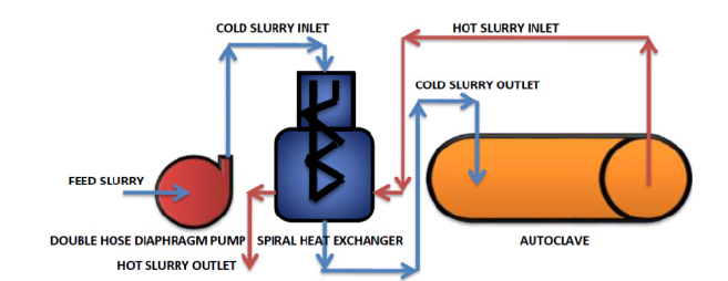 spiral heat exchanger and enters into a pressurized autoclave at