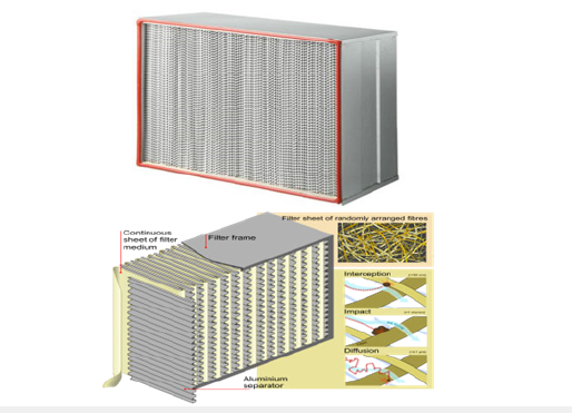 Figure 9:Manufacturing details of HEPA filter for gas-solid separation; (a). Outer view of HEPA filter [42,43], (b). Cross-sectional view of HEPA filter [41].