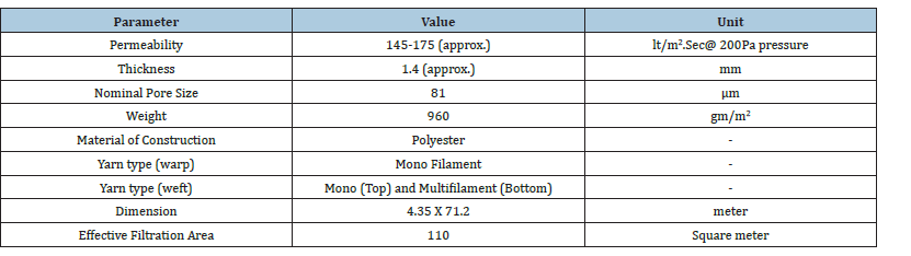 Product horizontal belt filtration (solid-liquid separation): Precipitated liquor further goes for thickening operation after the addition of suitable flocculent. Overflow liquor of thickener is used for recycling in circuits after extraction of byproduct. Underflow precipitated slurry of thickener moves on horizontal belt filter for removal of the filtrate by using sufficient vacuum from pumps and further recycling in plant circuit. Product discharge cake is repulped inside the tank by the addition of water. Water addition helps in product-grade purification. Table 3 provides technical specifications of filter media used for product belt filters in mineral ore processing industries [39].