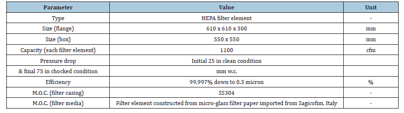 Table 4:Technical specification of HEPA filter [39].
