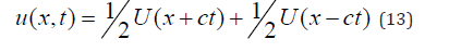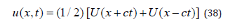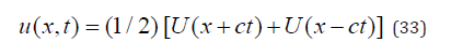 The initial configuration U(x) splits into two equal parts, one of which travels in the direction of -x and the other in the direction +x at speed c. The above are standard results, found in textbooks on continuum mechanics.