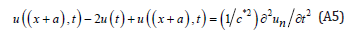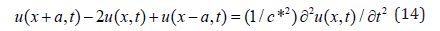 The equation of motion of an atom in a unidirectional crystal, consisting of equidistant, linearly aligned, like atoms separated by a distance ‘a’, is given by Equation (14), where u(x,t) is a continuous and twice differentiable function of t, which is assumed to be continuous,