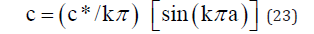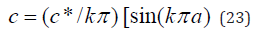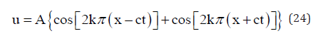 We set á = 2kπ in Equation (17) and thus U = 2Acos(2kπ x) , and following equation (18) we find that the relation for the wave speed c is given by Equation (23).