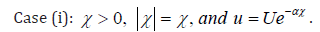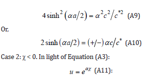 which reduces to Equation (27). We note that c is a positive, increasing function of α. Thus, the form u=U e−α|χ| is a solution of Equation (25) subject to the constraint on the wave speed c posed by Equation (27).