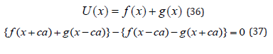 This dual property of the solution given by Equation (32) is a new finding. However, it must be noted that in Equation (11) time is continuous, whereas in Equation (30) time is discontinuous. These are findings that may as yet have repercussions in mechanics and physics. The form of the functions f and g is determined from the initial conditions. When the crystal is initially at rest, in the manner discussed below, then f=g=U, where U(x) is the initial atomic configuration. Then: