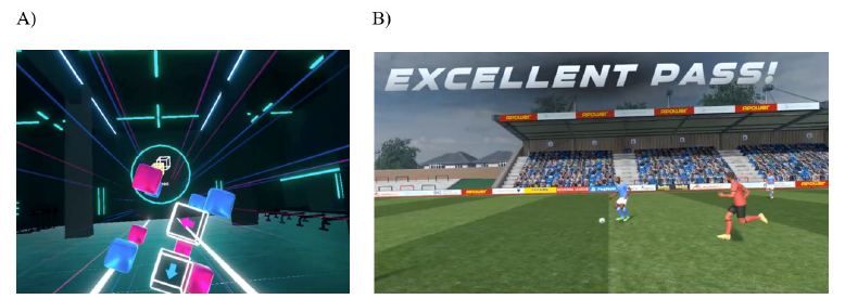 Figure 3:Virtual reality applications used to improve cognitive skills: A) Inhibition & eye-hand coordination; B) Scanning ability & reaction.