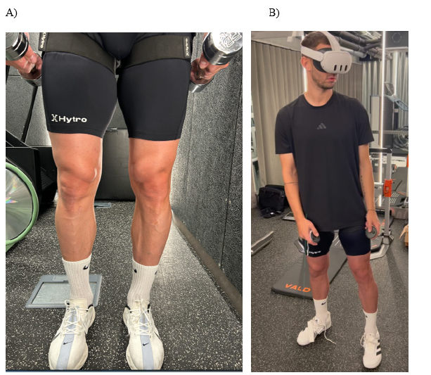 Figure 4:New training and RTP methods including: A) Blood Flow Restriction (BFR); B) Combined VR and BFR.