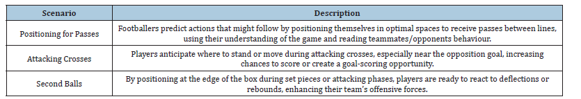 Table 2:Examples of anticipation scenarios for offensive players in football match-play.