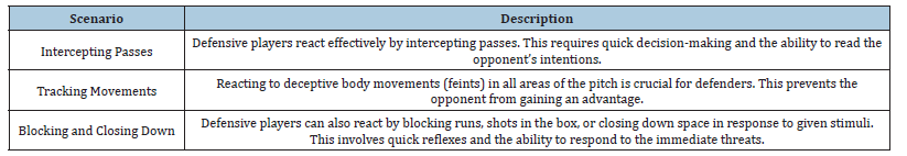 Table 3:Examples of reaction scenarios for defensive players in football match-play.
