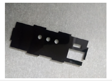 After purchasing the program, we install the corresponding program and load the code written in the code vision on the micro. In the next step, we put the IC into the socket and connect it with the power switch. In functional test stage, the battery charging circuit is tested by connecting the power to the charger with a micro USB cable and when the battery is so-called fully charged, the power connection to the battery must be disconnected. After the battery is charged, turn on the circuit using the dip switch. Then we carefully test and check all the parts of the device, including the user interface keys, the device’s functional modes, the display, the amount of charging and also the intensity of the emitted light. We use a suitable cover to put the product in it. After passing all the tests, it is time to panel the device. For this purpose, due to the high cost of plastic injection, we went to laser-cut dark Plexiglas molds, so we use the six sides of the Plexiglas sheet to make a rectangular cube (Figure 7) after cutting the relevant parts. The charging cable, display, keys and light output are also cut and connected to each other after accurate measurement.