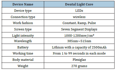 The Table 1 and Figure 11 demonstrate the complete specifications of the manufactured light cure device.