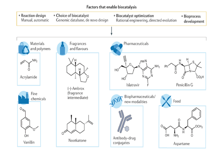 Figure 1:Examples of different products synthesized using biocatalysis [22].