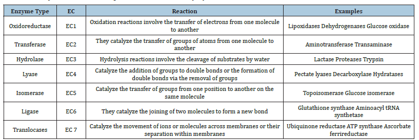 Table 1: Enzyme classes and representative reactions [41].
